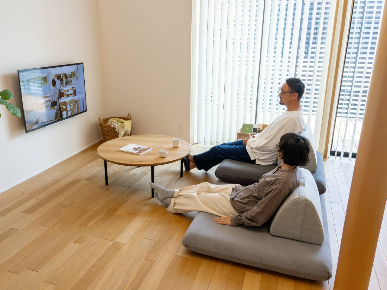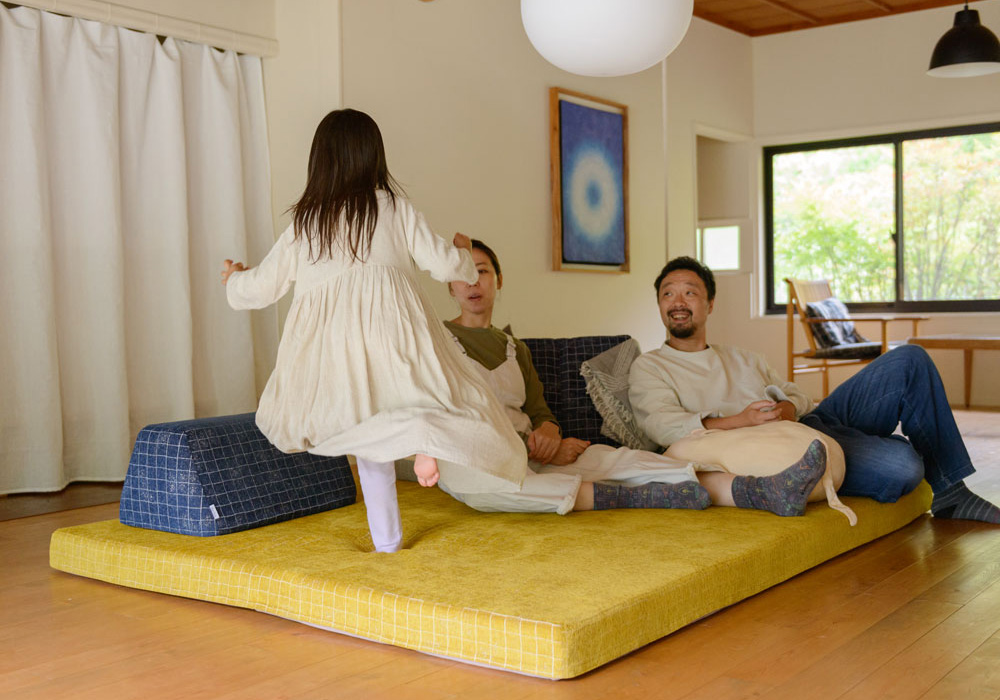 赤ちゃんを寝かしつけてそのままお昼寝できたり、ウレタン製だから子供が飛び跳ねても、騒音やソファが壊れる心配が少ない。子供の元気いっぱいな姿を、おおらかな気持ちで見守れます。