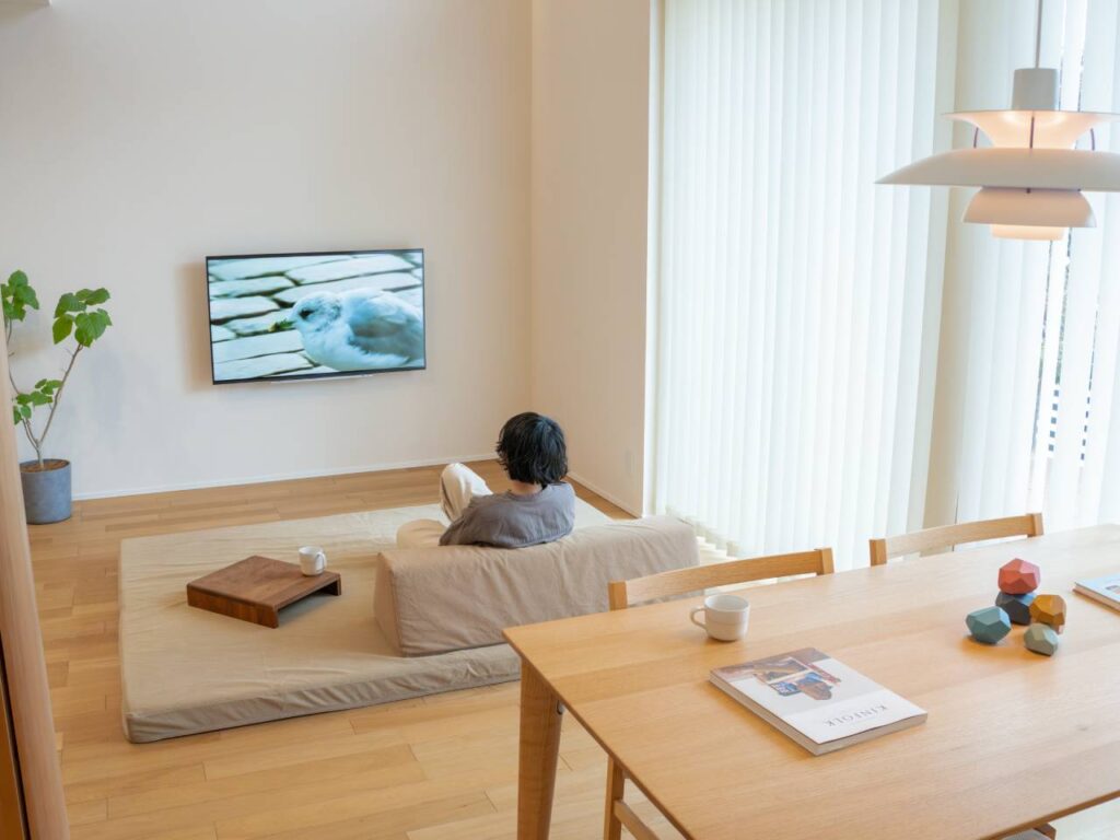 ローソファに囲まれて、子供たちも安心のフロアライフ。