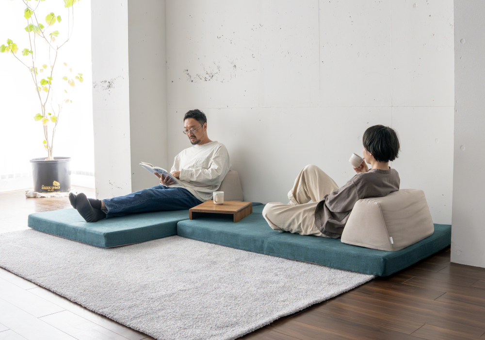 「こたつと使えるソファ」をヒントに誕生したソファで、見ての通り座面がとてつもなく低いのが特徴。