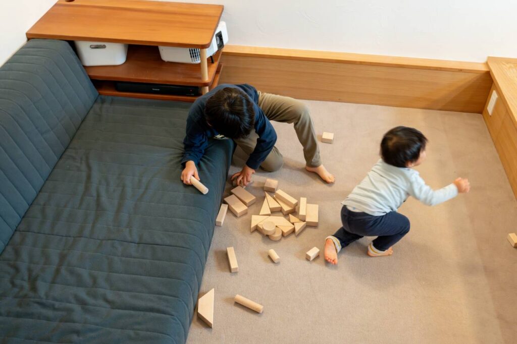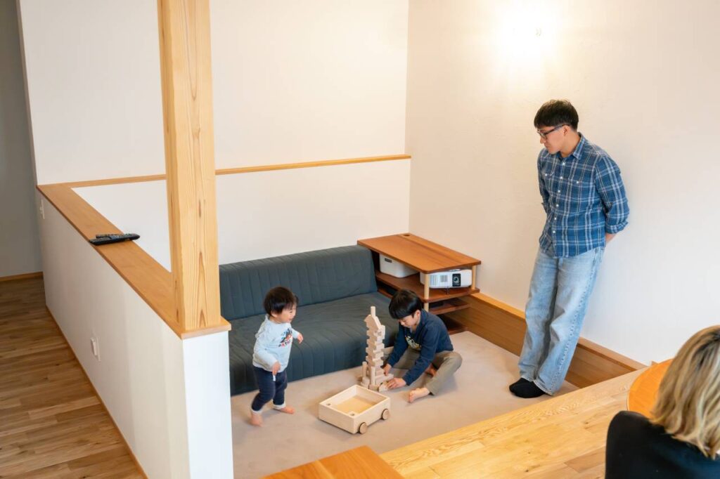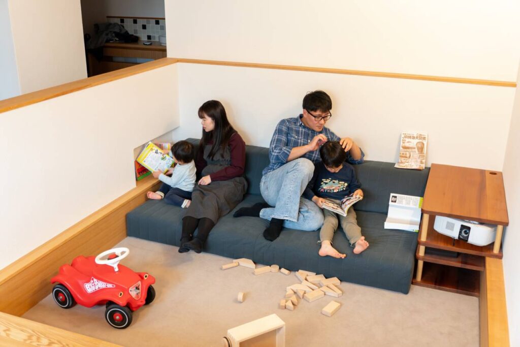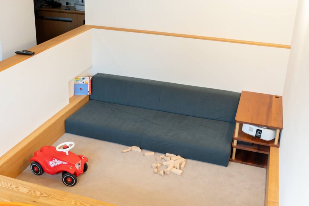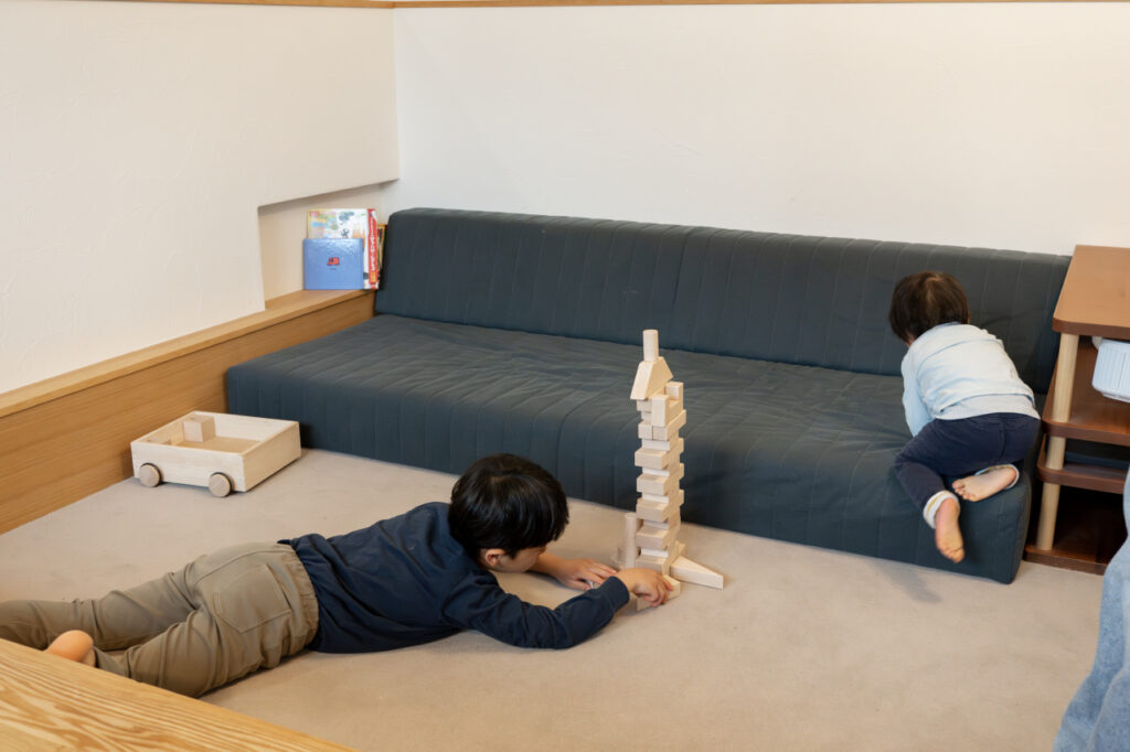 ピットリビングの秘密基地感と、つみきソファのアスレチック感が、子供にとってはワクワクする場所なのかも。