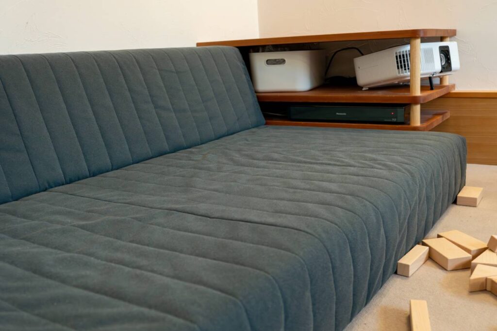 「そのローソファを、結構使い倒して(笑)使い勝手が良いのは分かっていたので、次もローソファにしよう。もっとちゃんとしたやつを買おうって。