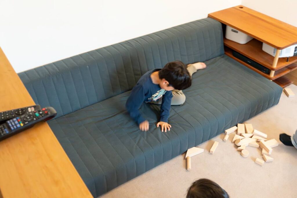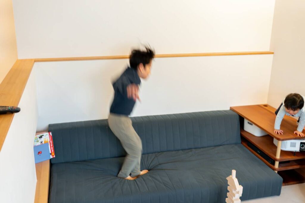 「ソファを使っているのは主に子供たち。完全に遊び場になってます。」