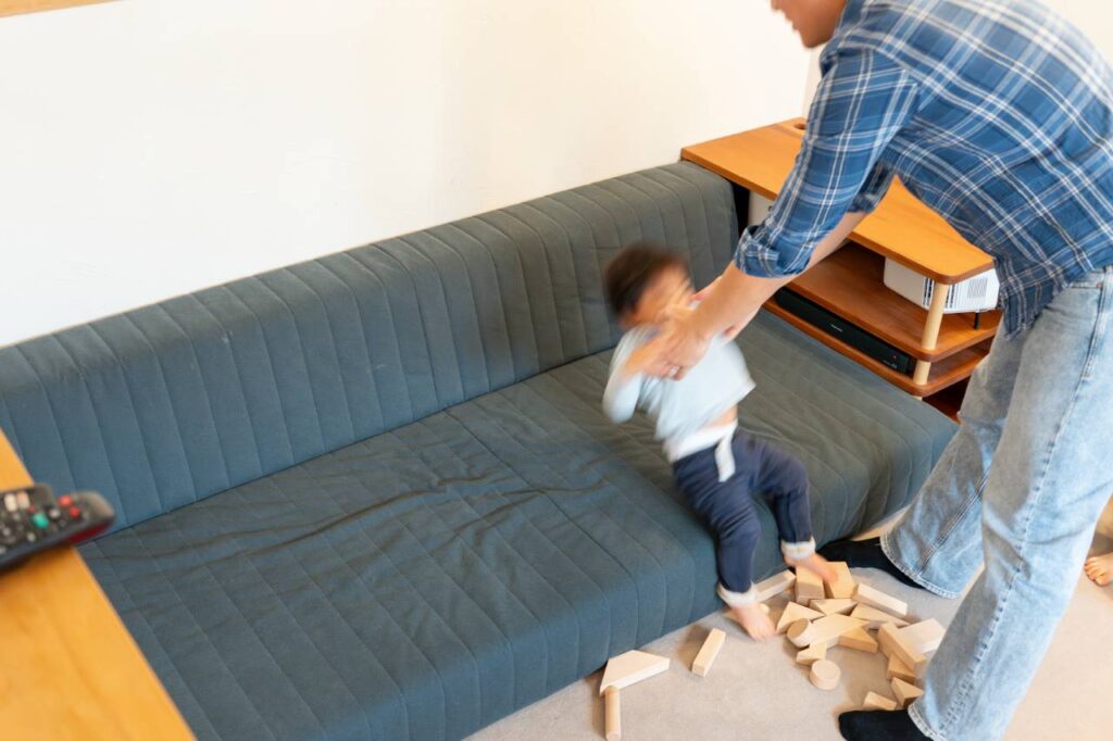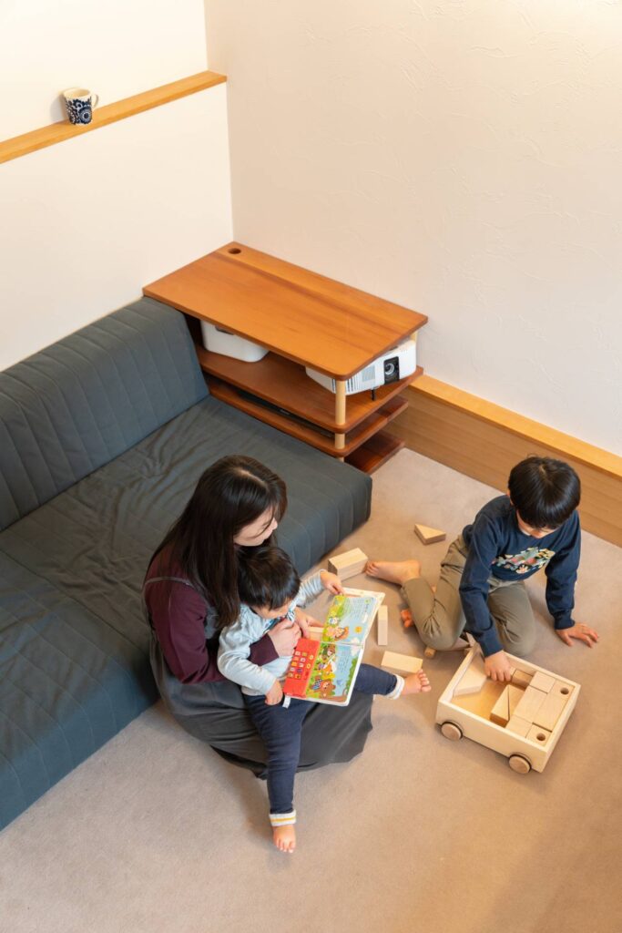 「前の家でも、上の子が生まれたタイミングでローソファを使っていました。やっぱり子供が小さいと普通のソファは危ないねって。」
