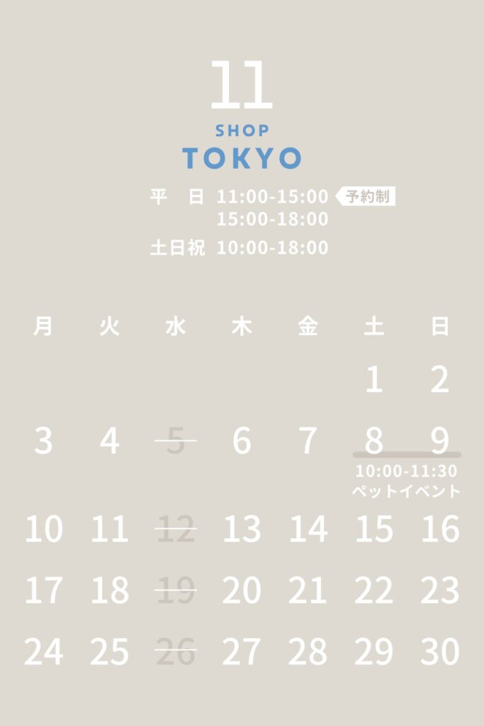 ※11/8(土)-9(日) 10:00-11:30は「HAREMのわんこモデルに!ペットイベント」を開催します。イベント開催中、一般のお客様も通常通りご来店いただけます。