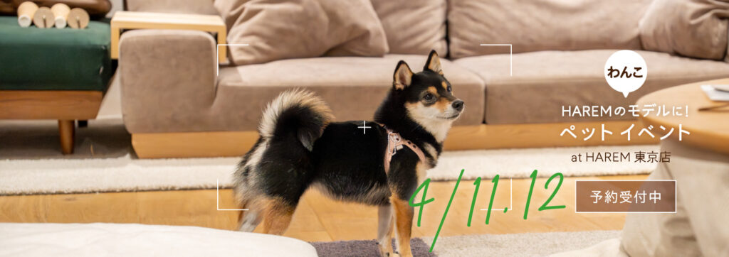 4/11(土)〜12(日) 各日10:00〜11:30は「HAREMのわんこモデルに!ペットイベント」を開催します。
