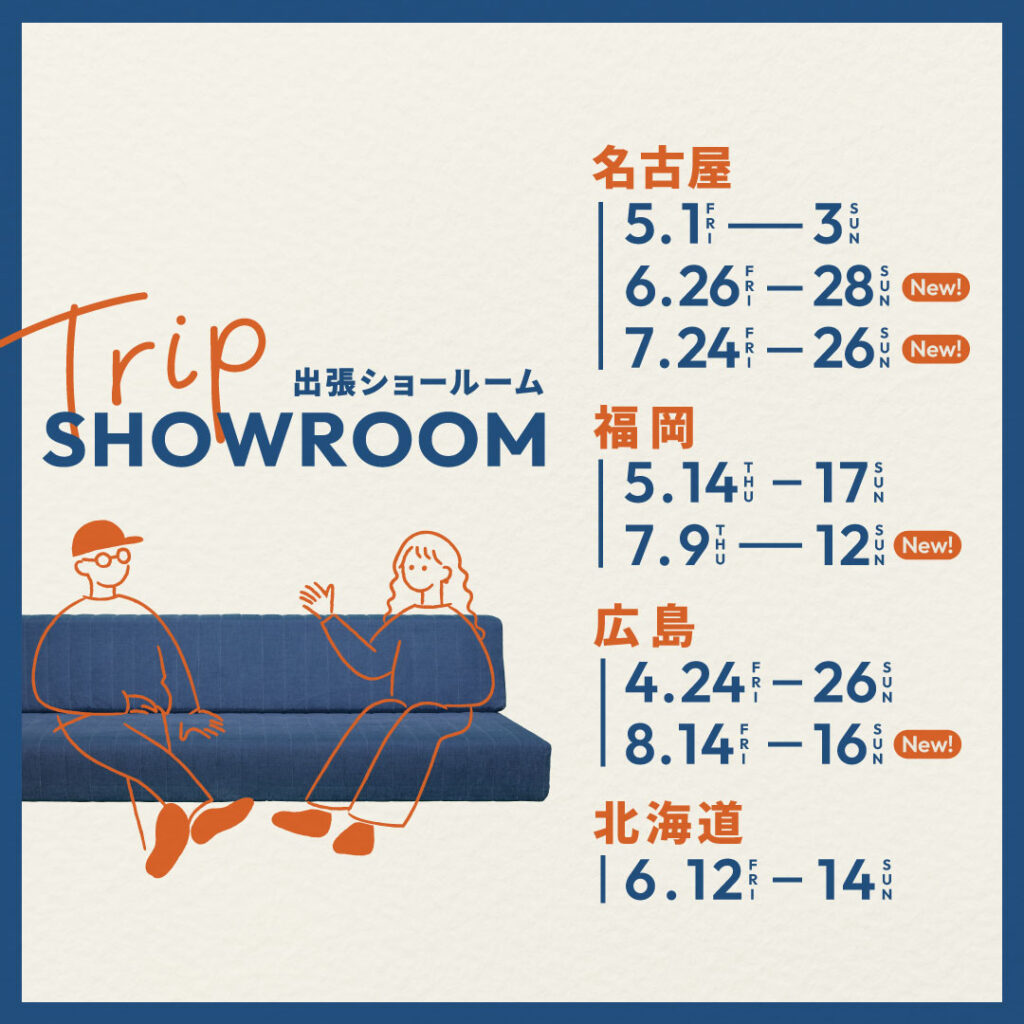 出張ショールームでは人気ソファのみ展示予定です。展示ソファについては特設ページよりご確認ください。