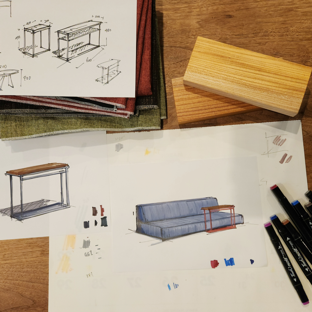 半円、扇型、四角のベースを組み合わせて、家の形に合うソファをパズルする。動かせる背もたれはラグやカーペットの上でも使用可能。とことんフレキシブルにこだわってデザインしたソファです。
