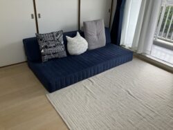 畳にソファに、座ったりごろ寝したり。 和室とも相性抜群のローソファ ソファ / つみきソファ 生地 / レコメンド : パステラ : デニム つみきソファ レコメンド デニム 3人掛けローソファ フロアソファ フロアがブラウン系 畳とソファ パステラ