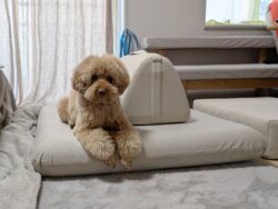 愛犬との新生活に、一緒に安心してくつろげるローソファ。 ソファ / ピカソソファ 生地 / レコメンド : ハコニワ : モノクロ ピカソソファ レコメンド モノクロ 2人掛けローソファ フロアソファ こたつとソファ フロアがブラウン系 ペットとソファ ハコニワ