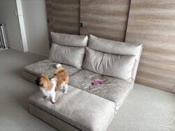 パテラになった愛犬と暮らすために、犬にも人にも安心のソファ。 ソファ / ピカソソファ 生地 / プレミアム : ラムース : 店舗限定カラー ピカソソファ プレミアム 店舗限定カラー 2人掛けローソファ カウチローソファ フロアソファ フロアがナチュラル系 ペットとソファ ラムース