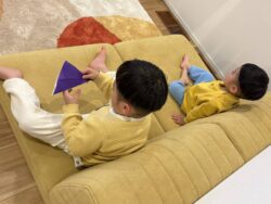 これから始まる赤ちゃんとの毎日に、安心して使えるつみきソファ。 ソファ / つみきソファ 生地 / スタンダード : カプリス : ライトグレー つみきソファ スタンダード ライトグレー 2人掛けローソファ フロアソファ フロアがナチュラル系 カプリス
