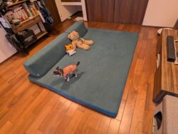 実際に試して分かった、犬も人も使い心地のいいローソファ。 ソファ / つみきソファ 生地 / スタンダード : カプリス : ミッドナイト つみきソファ スタンダード ミッドナイト 3人掛けローソファ フロアソファ ペットとソファ カプリス
