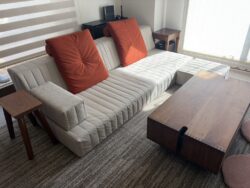 こだわりのダウンフロアリビングに、サイズオーダーのソファを。 ソファ / ピカソソファ 生地 / Nランク : コンフォルト : グレー ピカソソファ Nランク グレー 3人掛けローソファ コーナーローソファ フロアソファ こどもとソファ ピットリビングとソファ フロアがナチュラル系 コンフォルト
